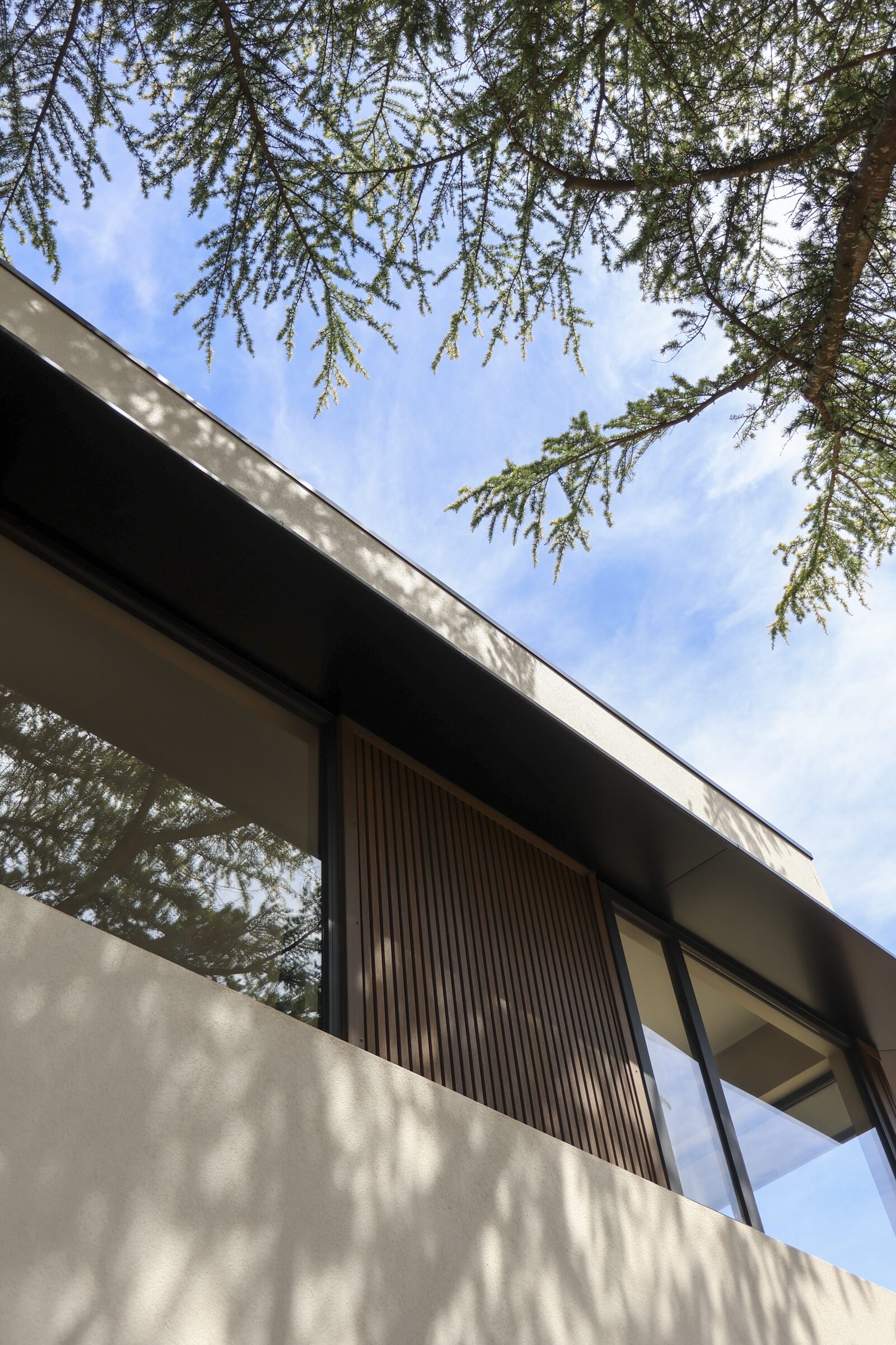 A contemporary new build designed to embrace its natural surroundings, this home uses expansive windows and oversized doors with black frames to perfectly frame the garden beyond.